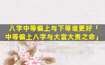 八字中 🐅 八字,等级一般分为上等中等、偏上中等中等、偏、下、下等五种八字中等偏上。已,经。属于比较好的一种八字而下等则是最差的等级