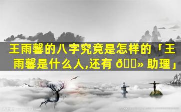 目前无法获得王雨馨的八字信息八字。是一种根 🐋 据出生年月日時推算命理的中国传统命 🕊 理学,属。于,个。人的隐私信息未经本人同意获取或披露他人八字信息是不合适的