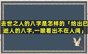 去世 💮 之人的八字中,通常会 🪴 有以 🐝 下特征: