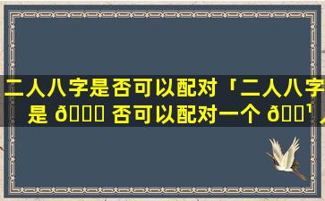 “二人八字是否可 🍁 以 🌵 配对一个人”这句话存 🦋 在逻辑问题,无法进行配对。