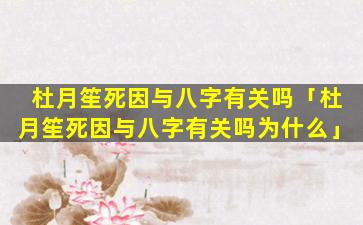 杜月 🐡 笙的死亡与八字 🐼 无关。