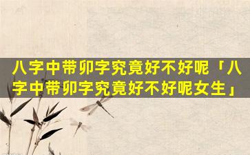八字中带 🐟 卯字对于女孩来说,好,不好需要综合整个八字格局 🌿 来看不能单单以卯字来判断。