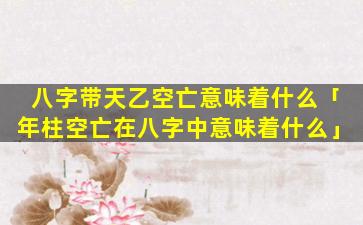 在八字命理中,“天乙空亡”指,的,是“年”支和日支相冲 🌼 导致天干与地支 ☘ 之 🦊 间的联系被中断从而形成一个空亡的状态。
