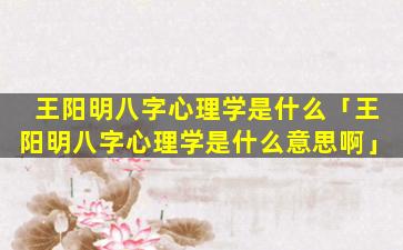 王阳明八 🦢 字心 🍀 理学是一种基于中国传统八 🦁 字学说的心理分析方法。它是由明代著名思想家、哲学。家王阳明创立的