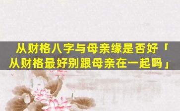 在财格命理学中,确实有这样的说法财 🐅 格:“最好别跟母亲在一起。”