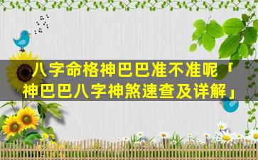 神巴巴八字 🕊 命格查询的准 🐎 确性