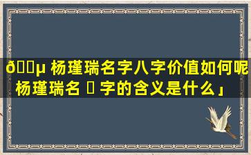 寓意吉祥:"杨"字寓意着高大挺拔、健康向上的生命力。"瑾"字代表着美玉寓 🐞 意着,珍、贵。美好和智慧