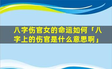 八 🌼 字伤官女的命运 🐳 与伤官的旺衰、五行生克以及八字格局等因素有 🦍 关。