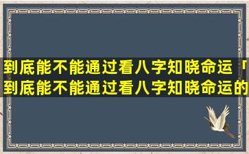 质 🐱 疑 🐛 八字知命的说法: