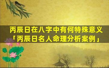 丙辰 🐋 日柱在八 🐅 字中具有以下特殊意义: