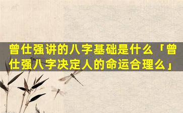 曾仕强提出的八字决定命运 🌻 学说,又,称,四 🌿 柱学是一种中国传统命理 🐴 学体系根据一个人的出生年月日时推算其命运吉凶。这,个学说。在民间流传甚广但也存在争议