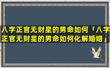八字命理中,正官无财星的男命在婚姻方面 🐘 的 🐎 化解方法:
