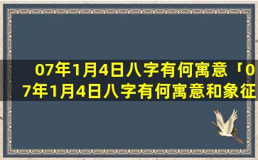 基于五行属性和十神分析,2007年1月4日的八字 🐞 具 🌷 有以下寓意和象征 🦢 :