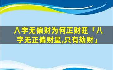 “八字无偏财为何 🦢 正财旺夫”这句话并不正确。