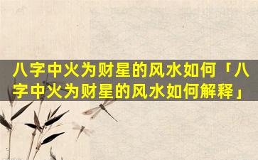 八字中火为财星的风 🕷 水布 🐬 局 💐