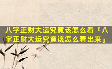 八 🕊 字走 🐴 正财大 🐯 运意味着:
