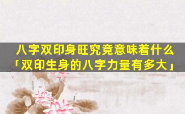 八字双印身旺是指八字 🐠 中印星(代表思想、文、化学 🦁 习以及母亲)出现两个且身旺的情况 🦆 。