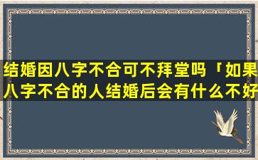 在 🦉 传统文化中,八字不合 🕸 不被视为不拜堂的充分理由拜堂。成,亲,是。婚礼中至关重要的仪式代表了夫妻双方结为连理需要双方同意和完成