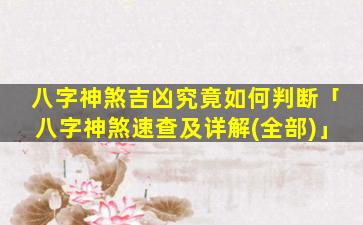 八字神煞是中国传统命理学中的一个重要组成部分是,指与八字相结合而推算吉凶 🐧 祸福的各种神灵和凶煞。这,些神煞。名称繁多各有其特定的含义和影响