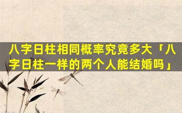 八 🌺 字日柱相同并不影响两个人是 💮 否可 🐎 以结婚。