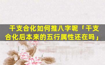 2. 支合干不化 🌿 :当只有地支合化,而,天干不合化时称为支合干不化“这”。种,情,况。下天干的五行属性仍然存在 🐧 地支 💐 的五行属性则被合化