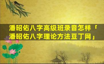 潘 🌻 昭佑八字高级班录音的评价 🕷