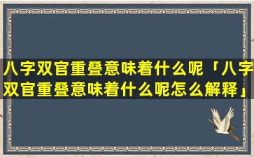 八字双官重叠指八字中同 🕷 时出现两个正官或七杀,这样的八字格局被称为双官重叠""。