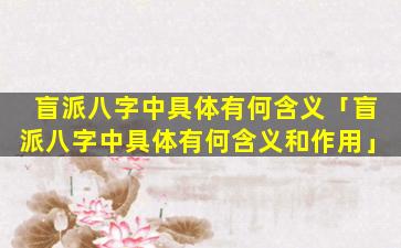 盲派八字 🐞 中 🐝 的 🐝 具体含义: