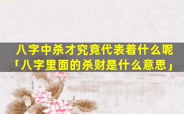 在八字命理中,“杀财”是 🦁 ,一“个”术“语”是指八字中出现 🐒 七杀和偏财同时出现 🌲 的情况。