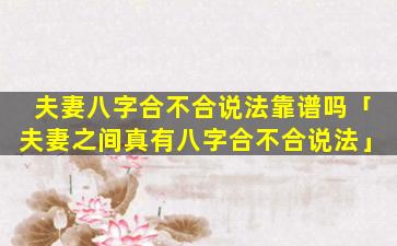夫 🐼 妻八字合不合的说法,在,民间流传已久至今仍有很多人相信。但,从,科。学的角度来看这种说法并不靠谱没 🐋 有科学依据