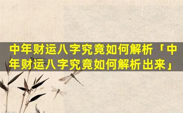 中年财 🍀 运八字解析 🦁