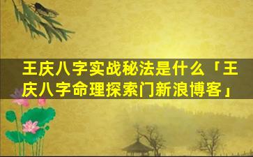 王庆八字实战秘法是一套研究八字命理的秘传方法,由民国时期 🦉 著名的命理学家 🌴 王庆先生创立。此秘法以其准确率高实、用。性强 🦢 而著称
