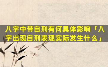 八字中的自刑是指出生八字中 💮 某一五行重复出现三个或三个以上,构成相刑关系自刑的五行。表现,为,死寂不活能 🦄 量闭塞导致运势不畅、阻。碍重重
