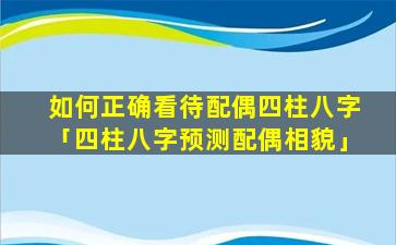 如何正确看待配偶四柱 🐞 八字 🦅