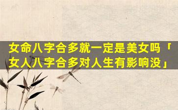 八字合多在命理上不一定代表美女八字合多。主要是指八字中天干地支合化的数量比较多一,般,来,说合多,者,容。易化合而生情性格比较温和 🍀 人际关系好但并不是一定就是美女
