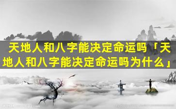 对于“天地人和八字能决定命运吗”的说法,存在以 🦋 下不同 🦁 的观点: