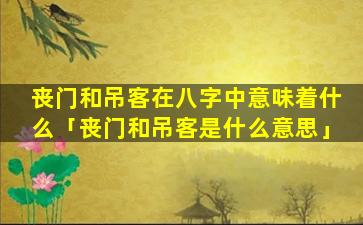 丧门吊客 🪴 星是八字命理中的 🍀 一种特殊星象,指,年柱天干被月柱地支所克进而影响日柱地支一。般,认为丧门吊客星会带来灾祸、厄。运和疾病 🐞