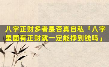 正财多者必然自私:八字学中正财多 💮 ,可,能代表某人有较好的财务能力但并不一定意味着自私自私。是,一,种性格特质受多种因素影响包括成长背景、社。会环境和个人经历 🐧