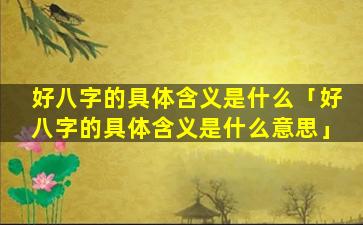 “好 🕊 八 🐛 字”的具 🦊 体含义