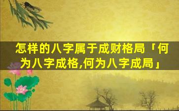 成财格局 🐘 的 🐶 八字 🦄 特征