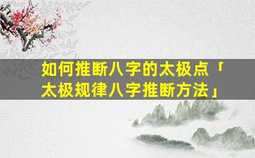 太极规律八字推断 🍁 方 🐈 法 🐬