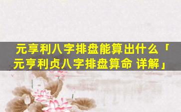 具体来说,元享利八 ☘ 字排盘 🕷 可以算出以下方 🐯 面的内容:
