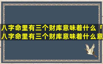 在八字命理 🐋 学中 🦟 ,财,库是指存储财富的仓库而拥有三个财库被认为是非常吉利的。