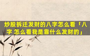 八 🐠 字看发财的因 🌷 素