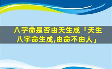 因此,虽然“天,生八字命生成由命不由人”这,句,话在中国文化中流传已久但它更多地是一种传统信 ☘ 仰并不代表科学事实。每,个人。都有自己的主观能动性可以通过自己的努力和选择 🦉 来创造自己的命运