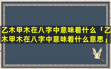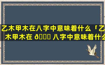 生生不息:乙木甲木相生,寓意生机勃勃、事 🐋 业兴旺 🐝 。