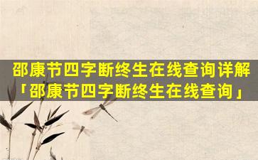 邵康节 🌳 四字断终 🐧 生在线查询 🪴