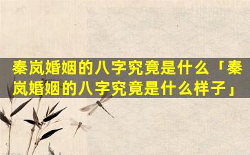 综合来看,秦,岚,的,八字显示她对婚姻有较为理想化的追求但受制于财弱婚姻感情难稳定容易出现 🐘 问 🍀 题。
