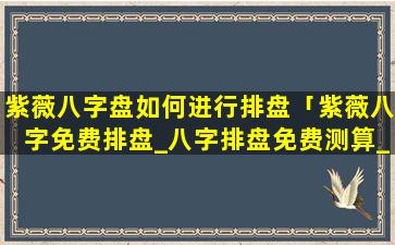 紫薇八字 🐱 盘排盘步 🐟 骤