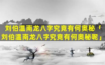 刘伯 🐬 温南龙八字是指明朝开国军师刘伯温留下的八句预 🐡 言预言,了明朝的兴衰和中国未来的发展。这八句预言分别是: